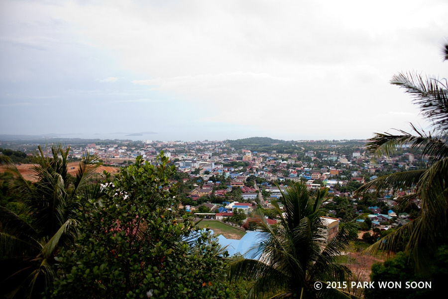 거의다 도착했을 때쯤 사원 공원이 나왔고, 그곳부터는 살짝살짝 보이는 시하눅빌 동네 뷰가 참으로 멋졌다. 지도상에 나온 뷰포인트는 사실 별로 였고, 사원으로 들어가서 사원 2층에서 본 뷰가 짱이였다. 의자 위로 올라가서 사진을 팍팍 찍었다. 참 좋았다. 날이 다시 흐려지려고 해서 서둘러서 내려왔다. 내려오는 길에 핸드폰에 음악 틀어놓고 들으면서 신나게 내려왔다. 내려올 땐 해가 구름에 가려져서 시원했다. 다 내려오니 점심때가 되어서 시내 와서 S가 택한 레스토랑에 들어가서 나는 누들 숲을 S는 볶음밥을 먹었는데 먹다 보니 비가 와서 나는 아이스커피를 한잔 시켜서 마셨다. 비가 그치고 숙소도 돌아와서 씻고 좀 쉬었다.