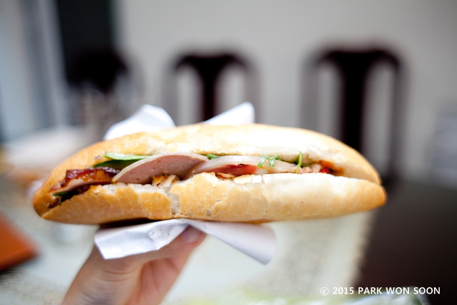 이제 좀 쉬다 호이안 풀문 보러 가야지 ㅋㅋ이제 다낭-호이안 버스는 나를 현지인으로 보는 건지 ㅋㅋ 오늘도 버스비는 현지인 가격으로 지불~ 오면서 버스 안에서 성당이랑 마블 마운틴 사진도 찍고 여유롭게 호이안 도착! 숙소 바로 와서 피곤해서 여주인장에게 샌드위치 있냐고 물으니 있다고… 키티가 호이안 샌드위치 되게 유명하다고 그랬는데 여주인장에게 물어봤더니 사다 주겠다고 Wow~ 쌩유~ 아마 내가 샀으면 이것도 두배 주고 먹었을 듯 ㅋ 암턴 맛있게 스프라이트와 냠냠.