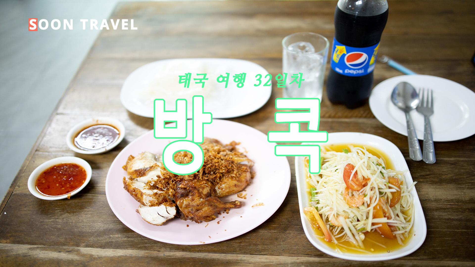 가격 : 치킨 반마리 140밧, 치킨 한마리 280밧, 쏨땀 70밧~ (25년 7월 기준)