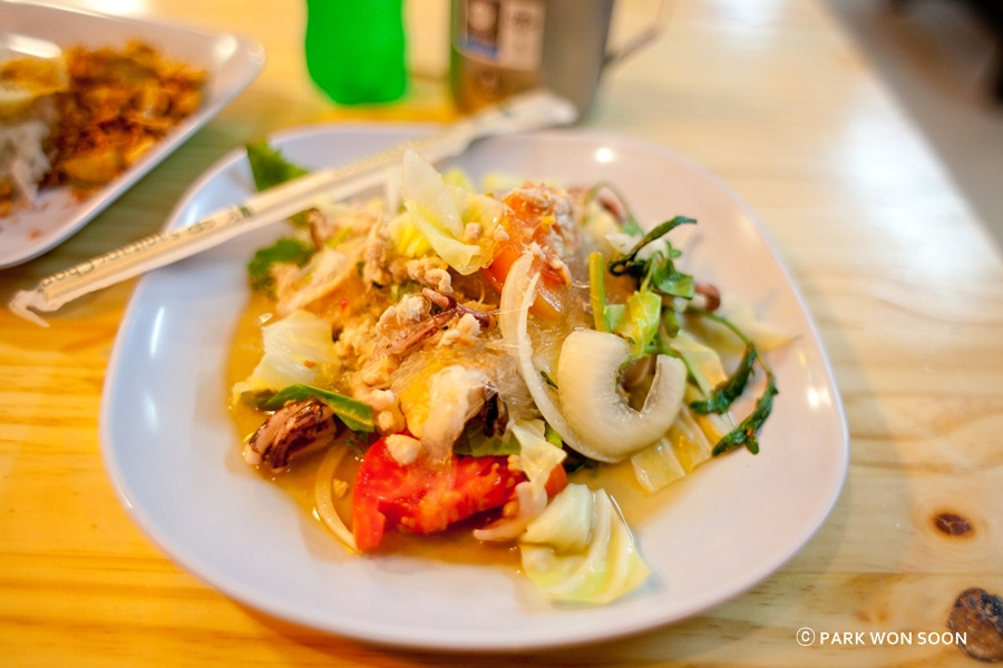 어제저녁을 먹은 곳이 정말 맛있어서 다시 ㄱㄱ 다른 메뉴를 2개를 시켜봤다. 일단 얌운센~ 그리고 마늘 치킨 밥 ㅋㅋ 얌운센은 역시 치앙마이가 더 맛있었고, 마늘 치킨밥은 맛있었다. 배 터지게 잘 먹고, 숙소 일찍 와서 사진 정리하고 잘 잤다.